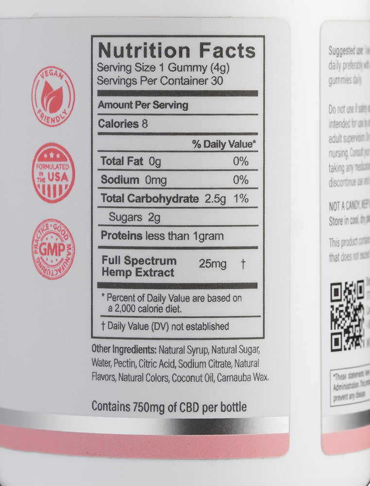 - 25mg of CBD per gummy